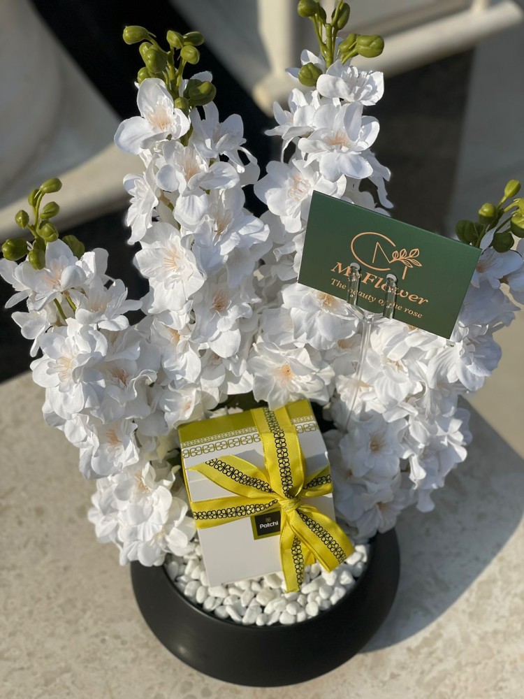 قاعده مكونه من ورد صناعي و ربع كيلو شوكولاته باتشي